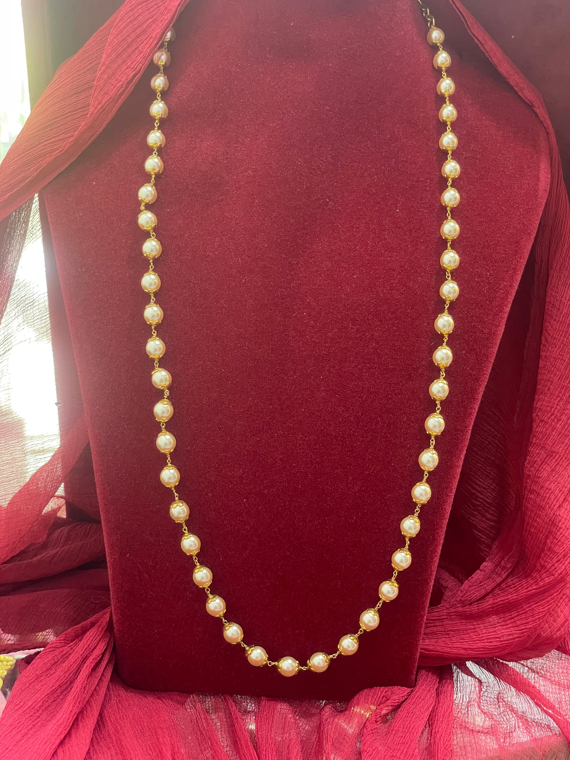 Silver pearls gold plated nakshi mala 24 inches
